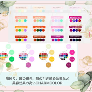 4つのシーズンを12タイプに分けたもので、2025.10.18からは16タイプに分類されたチャームカラー診断になります。どちらも、美容効果を目的とした診断結果のお伝えです。チャームカラーは専用ドレープで診断する事ができます。
